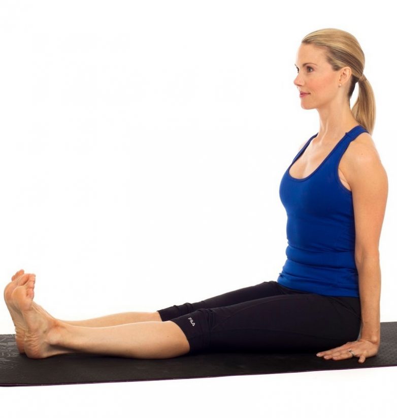 Техника выполнения:Садимся на пол и вытягиваем ноги перед собой.