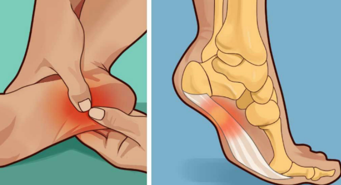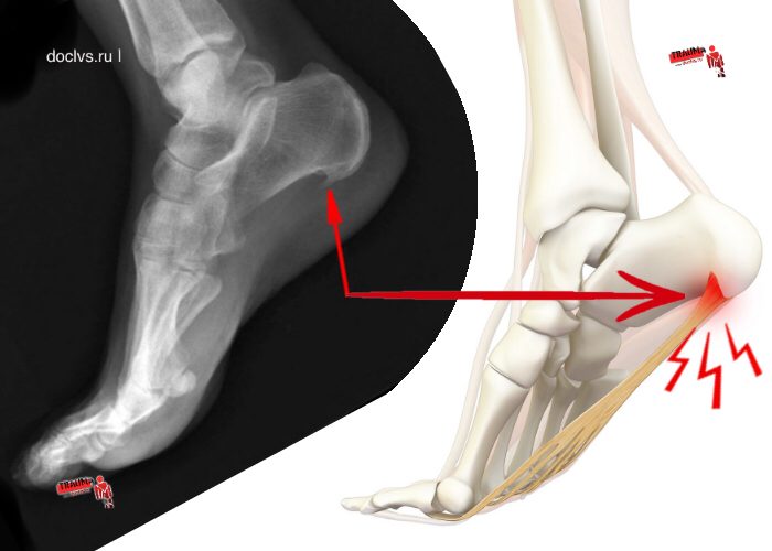 Именно этот нарост, прекрасно видимый на рентгене — давит на фасцию под пяточной костью, а именно на сухожилье (под названием — плантарный (подошвенный) апоневроз) и на другие ниже лежащие слои тканей. Такое давления раздражает участки тела, вызывает воспаление и боль, значительно усиливающуюся при долгой ходьбе.
