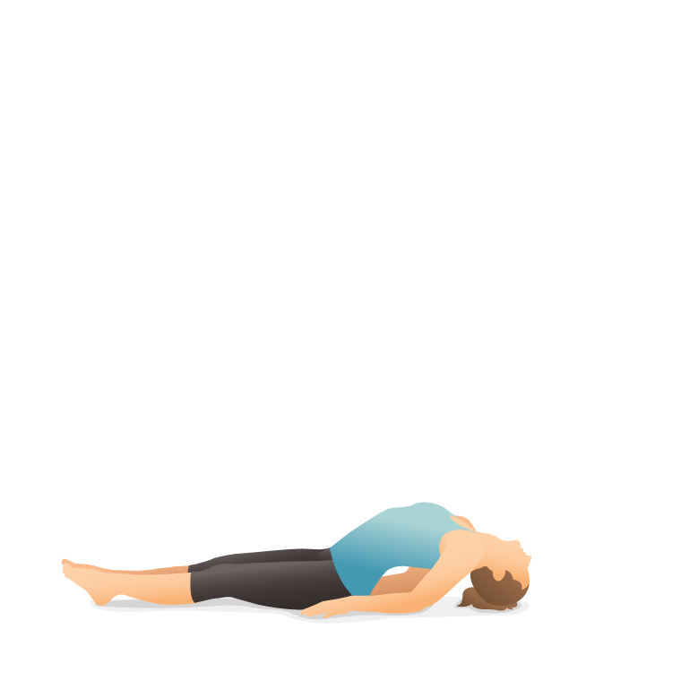 № 5. Первоначальная позиция лежа на животе, лоб касается поверхности пола, руки сгибаем, ладони на полу в области плечевых суставов. Делаем вдох и в это время медленно поднимаем туловище. Прогиб не должен быть глубоким, в финальной стадии нижние ребра покоятся на полу. Выдыхая, поворачиваем глаза, голову, плечи в левую сторону. Замираем в этой позе на 3-5 дыхательных циклов. Опускаемся на пол, делаем паузу и производим такое же действие вправо.
