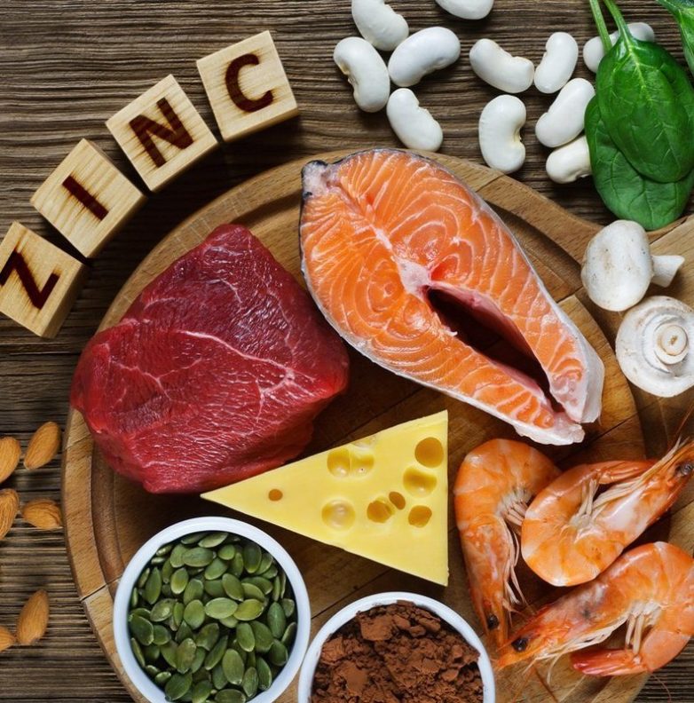 Минерал железо (Fe) — мясо, рыба, черешня, зелень, водоросли, какао.Минерал цинк (Zn) – мясо, дары моря.