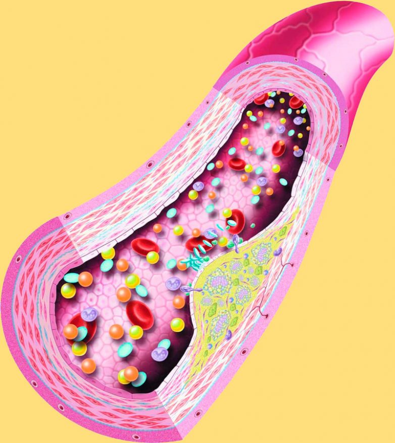 Холестерин мы получаем с едой (главным образом из животных жиров), он синтезируется в печени. Если в организме не развивается воспаление или нет разорванных сосудов, холестерин свободно перемещается и не накапливается на сосудистых стенках. Именно продолжительное воспаление провоцирует накопление холестерина.