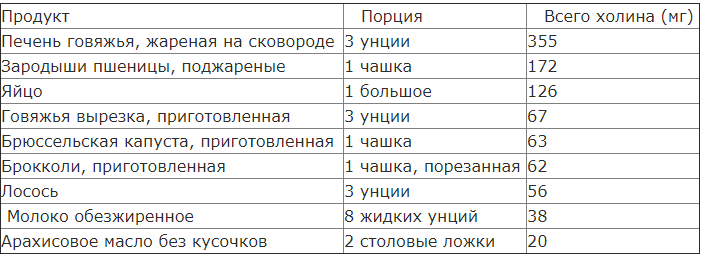 Если вы в настоящее время беременны, кажется разумным убедиться, что в вашем рационе содержится много продуктов, богатых холином, поскольку это будет основным источником этого важного питательного вещества (большинство пренатальных витаминов не содержат холина).К сожалению для многих вегетарианцев, животные продукты, такие как яйца и мясо – одни из лучших источников холина, поэтому, если вы веган или вегетарианец, который не употребляет в пищу продукты животного происхождения, у вас может быть риск дефицита. Следующая таблица перечисляет лучшие источники холина, которые помогут вам правильно выбрать продукты: