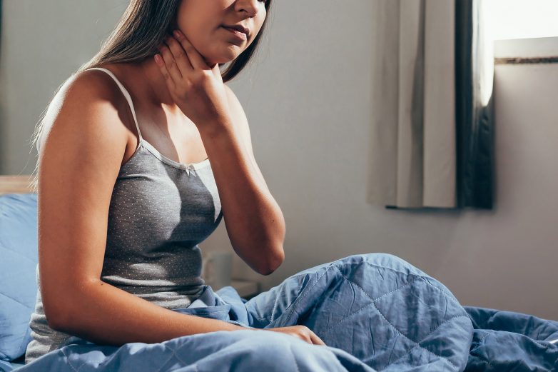 Полоскание горла соленой водой — примерно 1/2 чайной ложки, растворенной в стакане теплой воды, — может облегчить отек и облегчить боль и першение в горле.