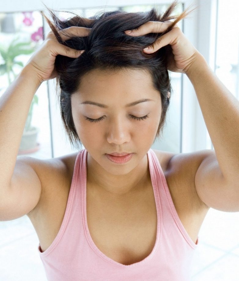 Для начала следует 5 раз совершить удары по голове двумя ладонями (умеренной силы), далее необходимо согнуть пальцы и проделать расчесывающие движения прядей с помощью ногтей. Разделить шевелюру, сделав пальцами пробор по центру головы (прочесать левую сторону левой рукой, а правую – соответственно, другой). Каждую сторону прочесать отдельно по 5 раз и в заключение — десять раз одновременно.