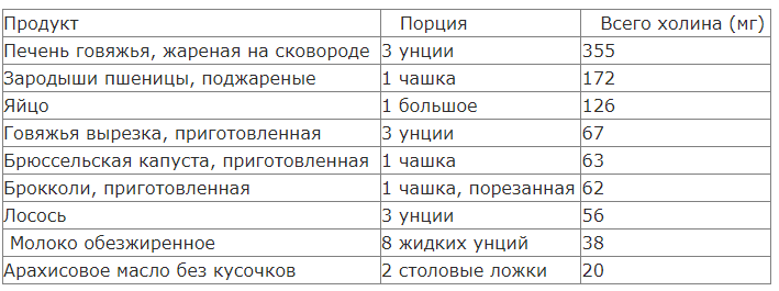 Если вы в настоящее время беременны, кажется разумным убедиться, что в вашем рационе содержится много продуктов, богатых холином, поскольку это будет основным источником этого важного питательного вещества (большинство пренатальных витаминов не содержат холина).К сожалению для многих вегетарианцев, животные продукты, такие как яйца и мясо – одни из лучших источников холина, поэтому, если вы веган или вегетарианец, который не употребляет в пищу продукты животного происхождения, у вас может быть риск дефицита. Следующая таблица перечисляет лучшие источники холина, которые помогут вам правильно выбрать продукты: