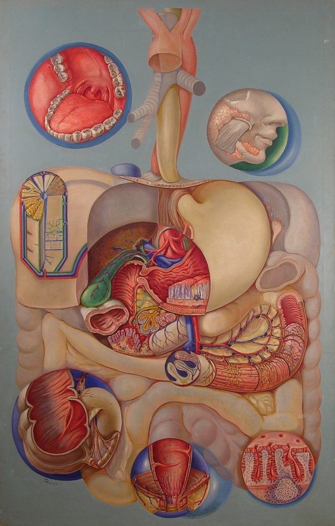 Переваривание пищи происходит при участии желудочного сока, вырабатываемого внутренними железами слизистой оболочки желудка, которую окружают мышцы желудка. В нем присутствуют соляная кислота, пепсин и слизь.