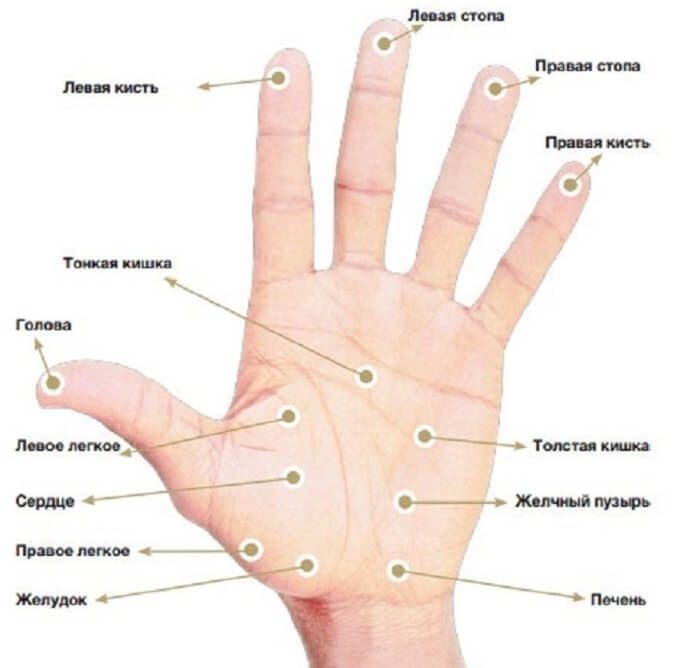 Вторая – это проекция этой же точки на тыльной стороне руки.