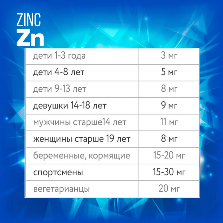 Микроэлемент цинк крайне важен для функционирования систем и внутренних органов. К факторам дефицита цинка можно отнести вегетарианскую диету, сахарный диабет, алкоголизм и ряд других проблем со здоровьем.