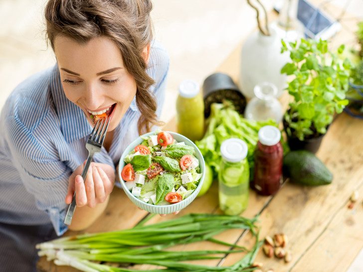 В идеале стремитесь съедать три порции овощей и два фрукта в день, желательно разного цвета: например, в один день помидор, морковь, брокколи, яблоко и банан, а в другой — огурец, кабачок, картофель, грушу и клубнику.