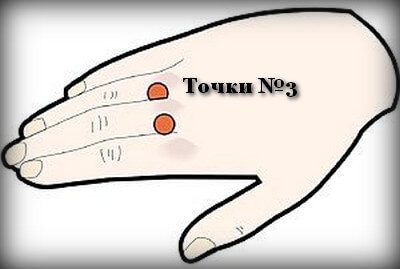 Это сразу две точки, которые находятся на кисти руки по бокам костяшки среднего пальца в том месте, где фаланга пальца стыкуется с суставом.Нажимать следует одновременно с двух сторон.