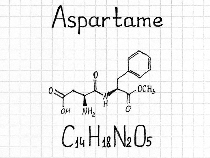 Ответственный за возникновение опухоли головного мозга у крыс, аспартам представляет собой искусственный подсластитель, который компенсирует вкус в низкокалорийных диетических продуктах. Известно, что чрезмерное потребление подобных продуктов повышает восприимчивость к лимфомам и лейкемии. При попадании в организм Aspartame превращается в формальдегид и вызывает мигрень, потерю зрения, судороги, рассеянный склероз и даже болезнь Паркинсона. Краткосрочные побочные эффекты включают головную боль и головокружение. Если вам нужны дополнительные подсластители, выбирайте растительную стевию.