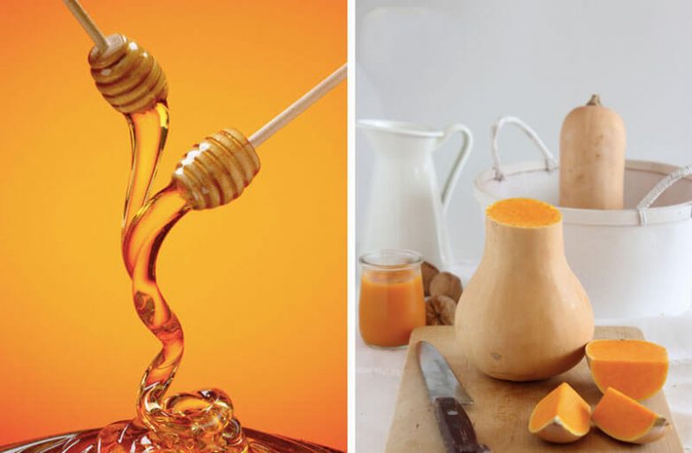 Или есть другой вариант рецепта — нам понадобится тыква, морковь, мед и сметана.