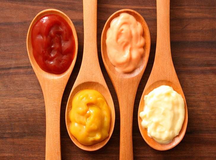 То есть любые мясные полуфабрикаты: сосиски, котлеты, колбасы и другие продукты, которые потенциально могут содержать большое количество соли, консервантов и других добавок. Диетологи советуют полностью исключить из рациона подобные продукты, так как помимо всего прочего, те содержат вредные жиры, которые не лучшим образом влияют на здоровье и уровень холестерина.Кетчуп и другие покупные соусы
