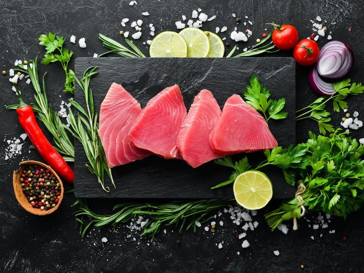 С тунцом придумано огромное количество блюд: от салатов и стейков до суши и роллов. В любом виде эта рыба не перестает быть прекрасным источником Омега-3, а также магния, калия, витамина B-12 и ниацина.