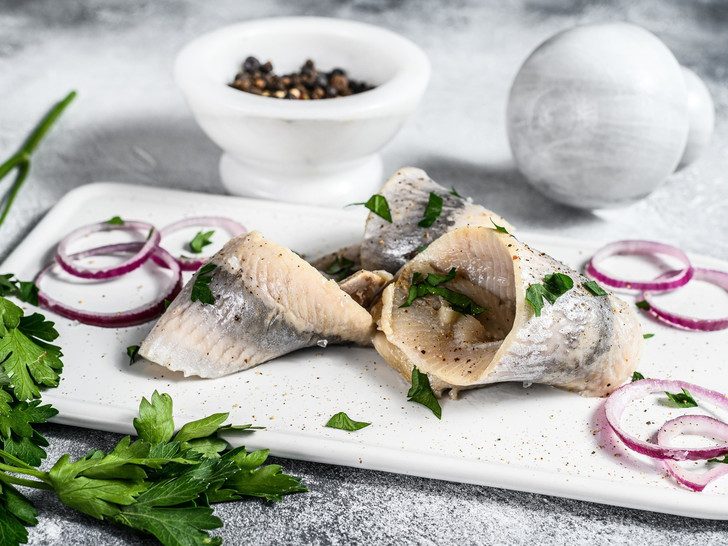 Сельдь — маринованная, приготовленная на гриле или в духовке — один из основных источников Омега-3. Кроме того, эта рыба содержит много полезных белка, кальция, магния, калия, ниацина и витамина B-12. Приятный бонус: сельдь — низкокалорийная рыба (всего 158 ккал на 100 г).