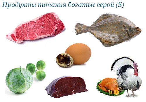 Острый перец, все виды капусты, лук, хрен и чеснок являются богатыми источниками серы. Кроме этого, ее много в орехах и семечках, мясе, рыбе и морских продуктах, яйцах, особенно в перепелиных.