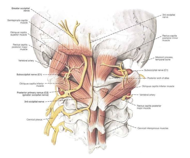Если боль отдает в затылок, а ее «центром» является шея или плечи, это говорит о патологии мышц шеи: