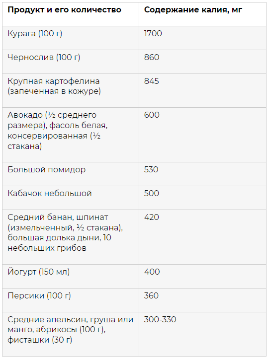 Таблица. Где больше всего калия?