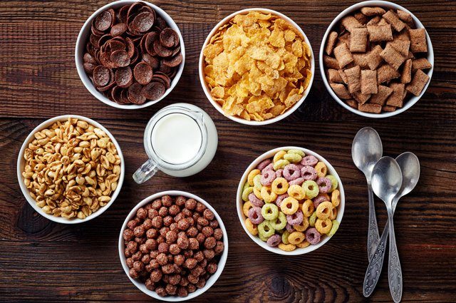 Сухие завтраки с большим количеством сахара.