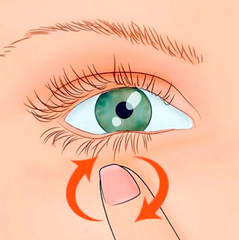 Круговыми движениями мягко массируйте веки средними пальцами в течение 30-ти секунд. Это улучшит кровообращение, будет стимулировать и укрепит глазные мышцы.