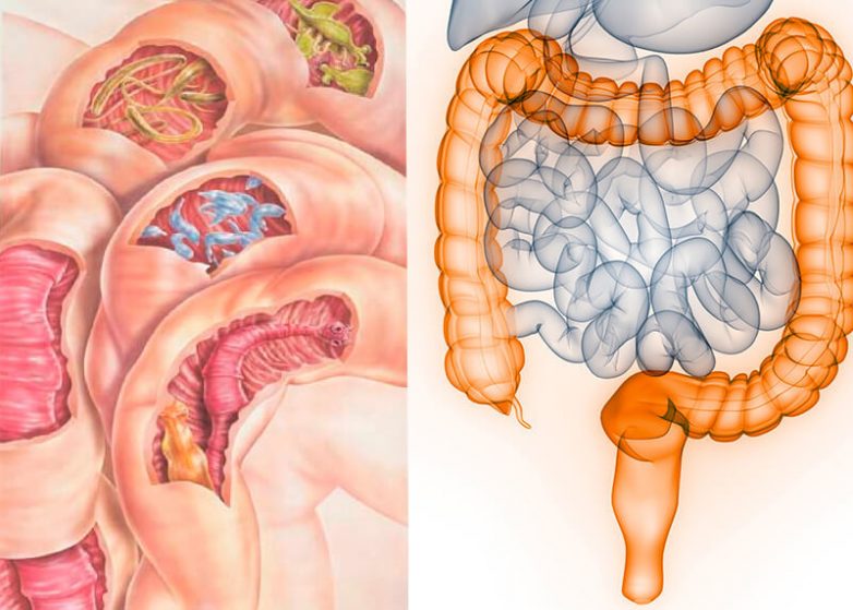 В кишечнике может обитать несколько видов паразитов, причем они защищают себя посредством так называемого «скафандра», состоящего из белков и полисахаридов. Такой «скафандр» позволяет патогенным микроорганизмам защититься от иммунной системы и лекарственных препаратов. Любые воспаления в кишечнике стимулируют рост численности паразитов, также как и другие заболевания.