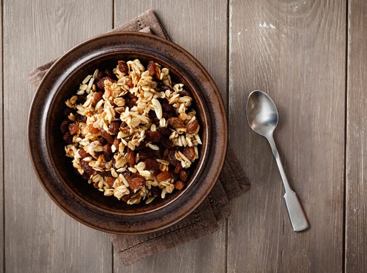 Их проблема в огромном количестве сахара и растительных масел, которые щедро добавляются производителями для усиления вкуса. На 100 грамм этого продукта приходится около 400 калорий, что определенно делает мюсли аутсайдерами в гонке на звание «Самый полезный и диетический продукт». Если же вы не можете отказаться от них на завтрак, приготовьте их самостоятельно, для этого достаточно просто перемешать любимые орехи, злаки и сухофрукты.