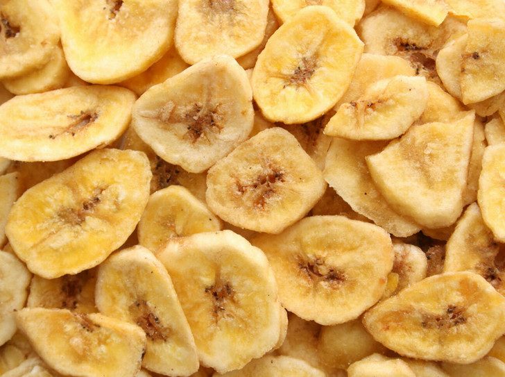 Принято считать, что они так же полезны, как и остальные сухофрукты. Однако мало кто задумывается, как готовится это хрустящее лакомство. Принцип приготовления банановых чипсов был заимствован у оригинальных картофельных: свежие бананы режут на тонкие ломтики и обжаривают во фритюре (то есть в огромном количестве масла), завершая процесс обмакиванием в сахарный сироп (для хруста). В итоге польза банановых чипсов по шкале от самого к наименее вредному находится где-то между чизбургером и шоколадными батончиками.Обезжиренные продукты