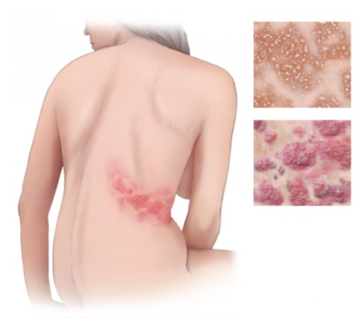 Опоясывающим герпесом (лишаем) называют инфекционное заболевание, которое спровоцировано вирусом ветряной оспы. Главной областью поражения служат нервы под кожей, поэтому основным симптомом является возникновение вдоль нерва воспаления и сыпи (волдырей).