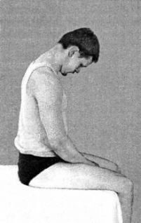 Лечебное движение для снятия головной боли выполняют в положении сидя с выпрямленным туловищем и наклоненной вперед под действием своей силы тяжести головой.