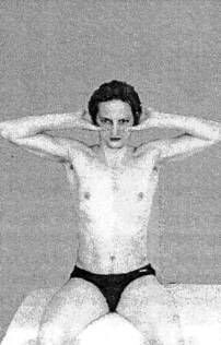 Фиксировать большими пальцами кистей поднятых вверх рук верхние скуловые дуги, а остальными пальцами свой затылок.