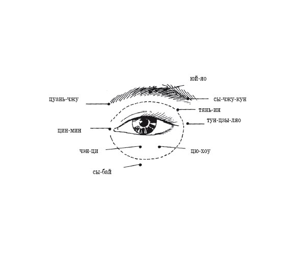 2. 27 раз воздействуйте на точки на наружных уголках глаз. Затем на эти же точки – 36 раз, но тыльной стороной больших пальцев.