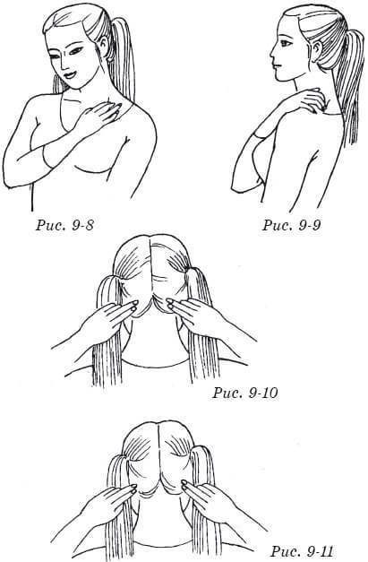 8. Надавите средним пальцем на точку вань-гу с больной стороны 1 минуту (рис. 9-11).