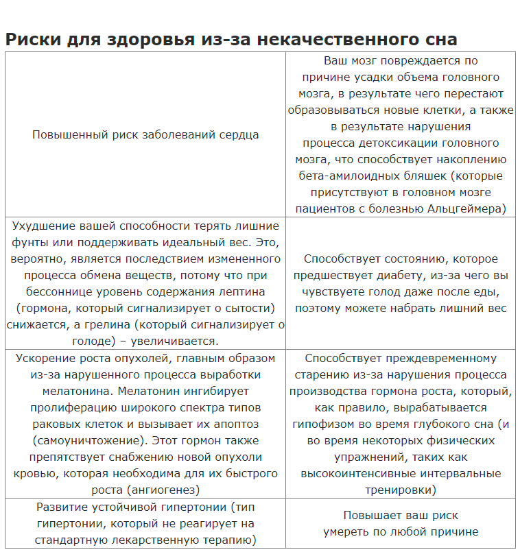 Отсутствие сна практически также влияет на иммунную систему, как физический стресс или болезнь, что частично объясняет, почему недостаток сна связан с повышенным риском развития некоторых хронических заболеваний.