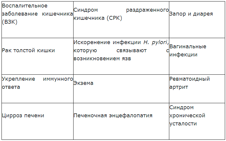Суть в том, что восстановление кишечной флоры — очень нужный шаг для тех, кто старается похудеть. Исследованиями документально подтверждено благотворное воздействие пробиотиков на широкий круг расстройств, в том числе: