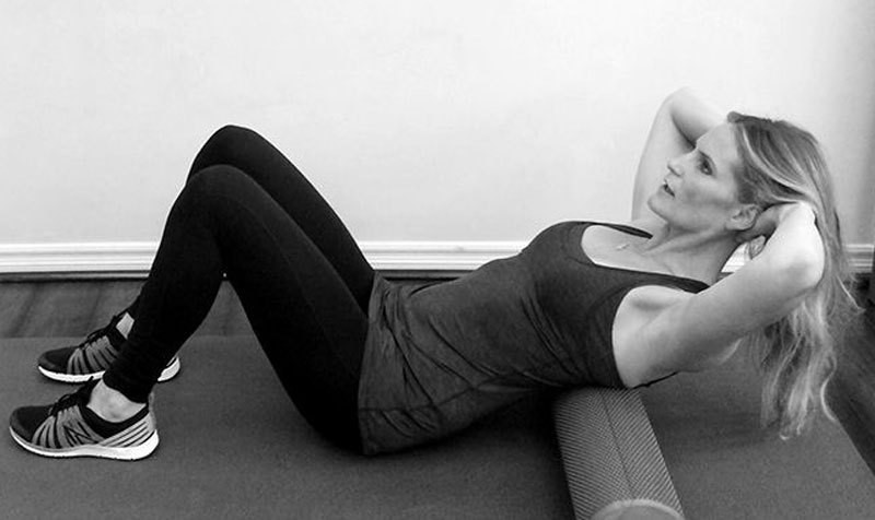 Упражнения на растяжку мыщц брюшного пресса, нижней части поясницы и тазового пояса на валике или полумяче