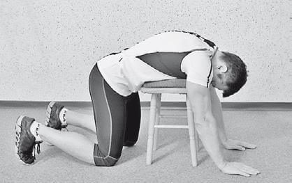 Исходное положение: лежа на табурете лицом вниз.Табурет располагается под грудной клеткой и верхней частью живота. Мягкий валик из полотенца позволяет полностью перенести вес тела на табурет.