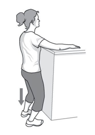 При помощи здоровой руки поднимаем болезненную руку на горизонтальную поверхность, расположенную на уровне груди. Плавно сгибаем ноги в коленях, раскрывая подмышку. Немного сгибаем колено, деликатно растягивая подмышку, после этого выпрямляем. С каждым последующим сгибанием колена тянемся чуть-чуть дальше, но без боли. Выполняем 10-20 раз в день.