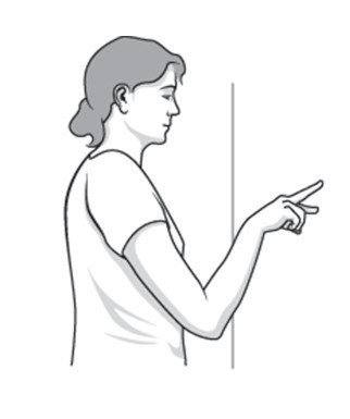 Становимся лицом к стенке на расстоянии 3/4 вытянутой руки. Тянемся и касаемся стены на линии талии кончиками пальцев болезненной руки. Немного сгибаем локоть и плавно проводим пальцами по стене (напоминает движение паука), пока рука не поднимется максимально возможно. Работают пальцы, а не плечевые мускулы. Плавно опускаем руку (можно помочь здоровой рукой) и повторяем действие. Выполняем 10-20 раз в день.