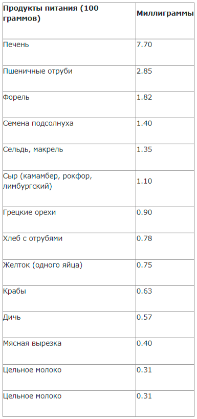 Детям, подросткам и взрослым требуется ежесуточно от 5 до 10 мг витамина, а беременным и кормящим женщинам до 15 мг. Для того чтобы обеспечить новорожденному необходимый рацион витамина в период образования мозга и тканей, материнское молоко содержит пан-тотеновую кислоту в очень высокой концентрации — до 5 мг на литр. Тем, кто подвергается воздействию стресса или занят физическим трудом, требуется больше пантотеновой кислоты, чем людям со спокойным, размеренным образом жизни.Особенно богаты пантотеновой кислотой: