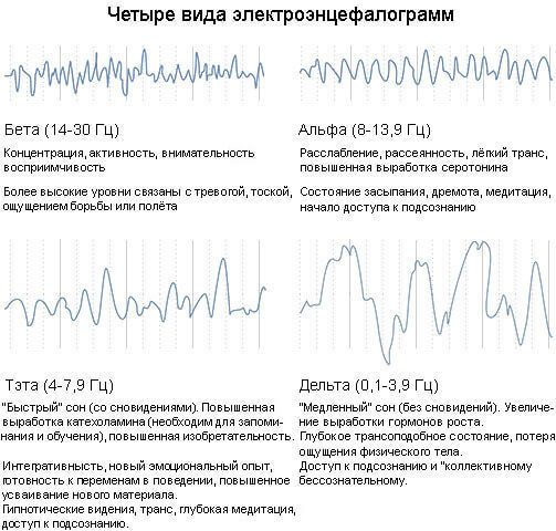 Ниже представлены паттерны активности мозга, характерные для разных состояний: