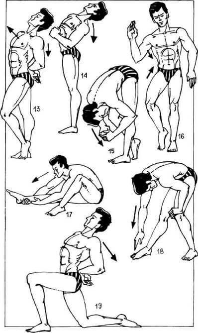 15. То же, но сначала поднимите руки назад-вверх, согнув их в локтях, а затем полностью выпрямите (см. рис. 8, 5).