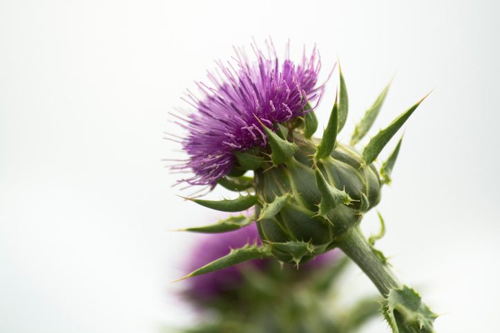 Расторопша пятнистая, также известная как Silybum marianum, — это колючее растение с белыми прожилками и фиолетовыми цветками. Расторопша используется в качестве лечебного средства на протяжении веков. Расторопша защищает многочисленные мембраны печеночных клеток и замедляет скорость всасывания токсинов в печень. Исследования показали, что это может принести пользу людей с циррозом печени и гепатитом С и В.