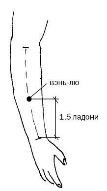 2. Вэнь-лю, точка канала толстого кишечника расположена на руке, на 1,5 ладони выше основания большого пальца. Традиционно используется для возбуждения и прогревания внутренней энергии.