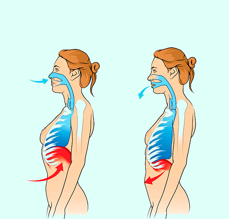 Правильное дыхание жизненно необходимо для лиц с тяжелой гипертонии и бронхиальной астмой. При указанных недугах человек вынужден дышать специфически, то есть, очень глубоко. Вот как это выглядит: глубокий вдох — полный выдох.