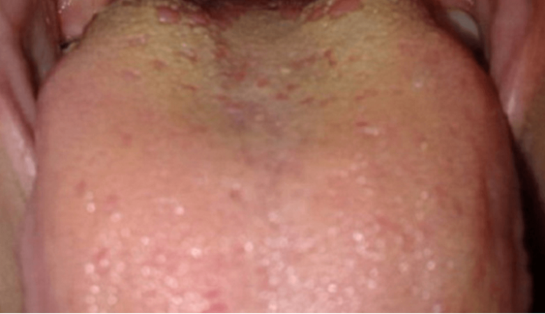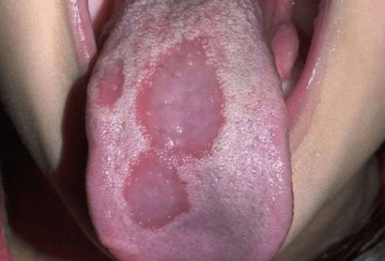 Чаще всего такая окраска языка вызвана дефицитом витамина В2. Может также наблюдаться у женщин, которые имеют проблемы с менструальным циклом или у людей, испытывающих хроническую боль.