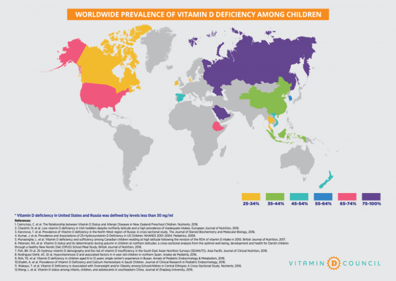 Распространенность дефицита витамина Д среди детского населения разных стран