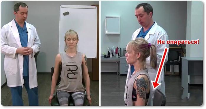 Обратите внимание! Спина ни в коем случае не должна опираться на спинку стула, иначе нарушится архитектура движений, и упражнения НЕ принесут желаемого результата.