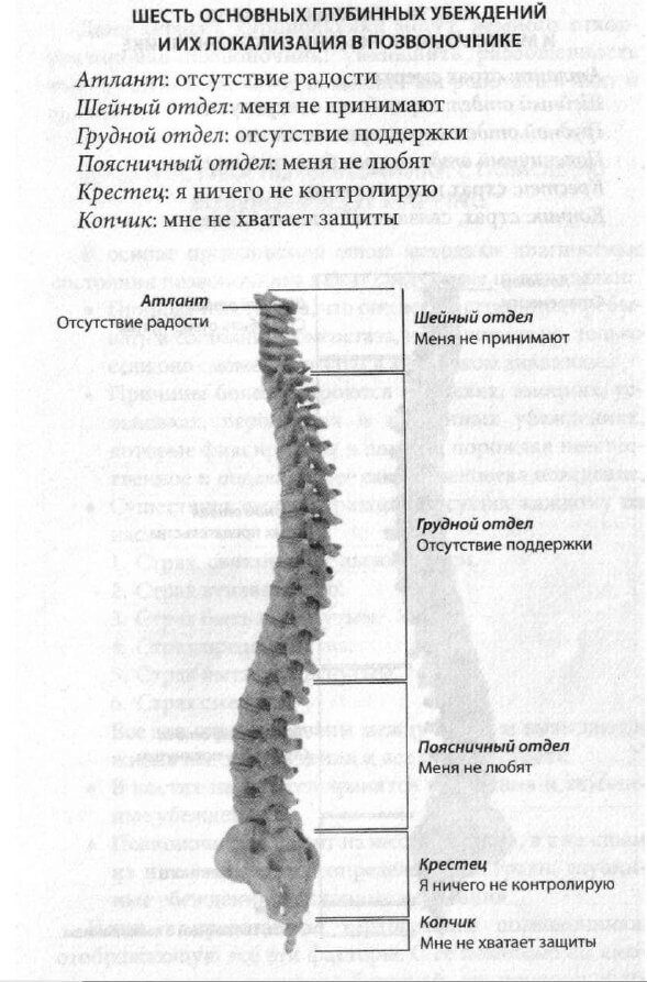 Позвоночник состоит из шести отделов, и с каждым из них соотносятся определенные страхи, глубинные убеждения и основные верования.