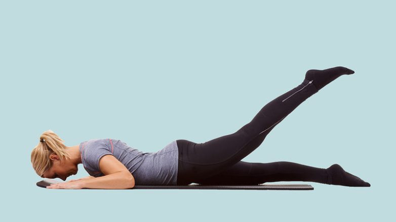 согнуть ногу и толкнуть ее вверх, напрягая ягодичные мышцы 3-5 секунд;