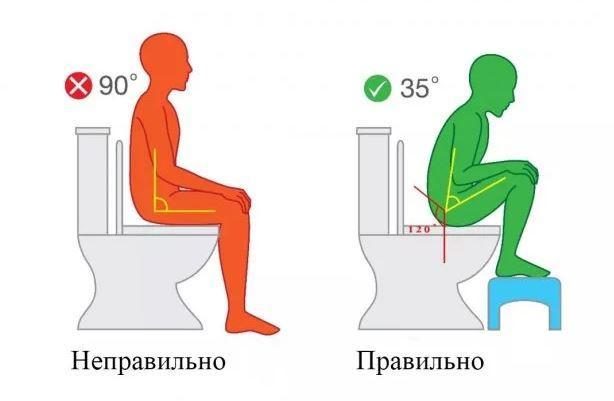Природная поза для опорожнения кишечника – сидя на корточках. Для выработки природного рефлекса поставьте под ноги небольшую скамейку или подставку. Это расслабит пуборектальную мышцу, которая в сокращенном положении удерживает содержимое и устраняет позывы к дефекации.